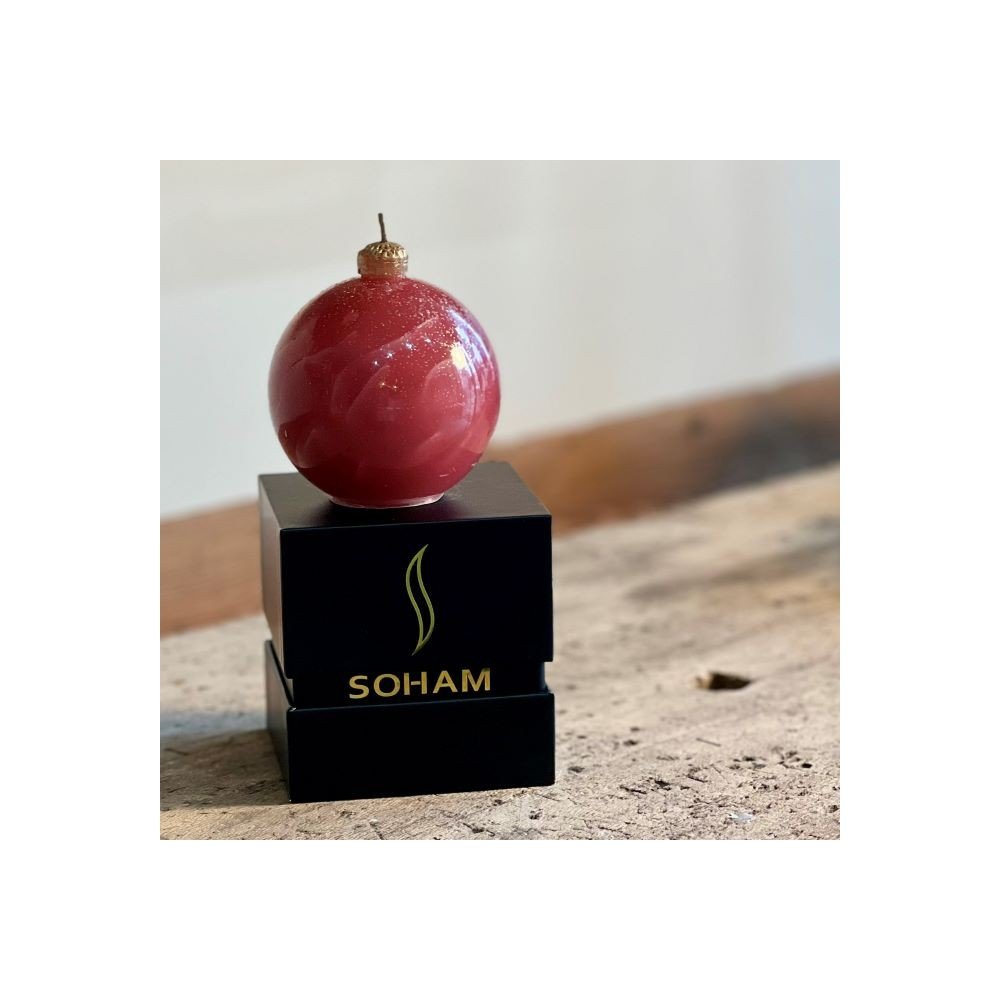 Magnifique Bougie en forme de boule de Noël. Un effet marbré et brillant pour une décoration de table parfaite.